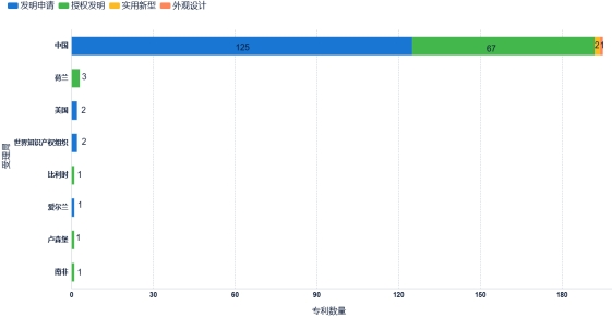 我校及附属机构2025年下半年公开/公告的206项专利中,有195项(占比94.66%)为中国申请专利;有11项为国外/世界知识产权组织申请专利(其中荷兰3项,美国2项,世界知识产权组织2项,比利时1项、卢森堡、南非及卢森堡各1项)。见图3。